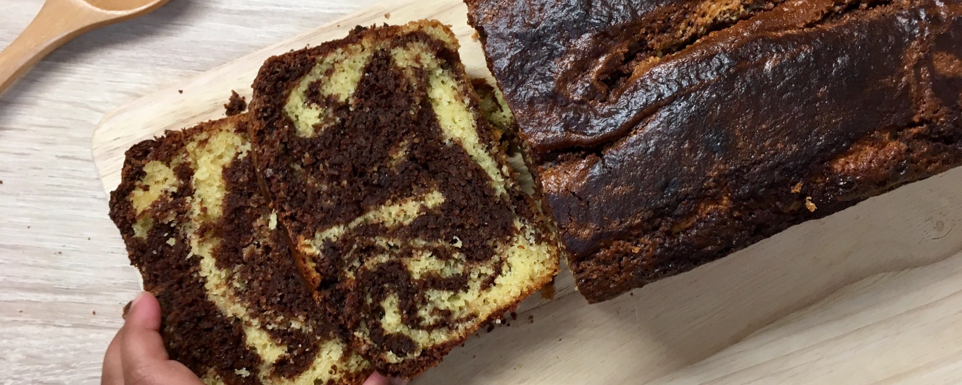 Vous êtes pressé et vous voulez faire un plus petit marbré ? À partir de la pâte du gâteau au yaourt, transvaser la moitié de la pâte dans un autre récipient, ajouter-y 2c.a.soupe de chocolat en poudre, remuer et tadam ! Voilà de quoi réaliser un marbré rapide et délicieux !